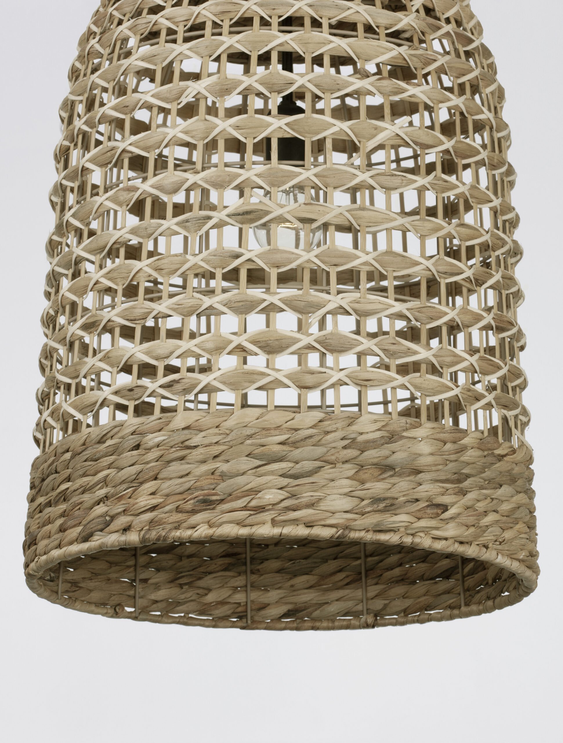 Κρεμαστό Φωτιστικό, σε ναυτικό στυλ, από αποξηραμένο υάκινθο νερού και μαύρο υφασμάτινο καλώδιο.