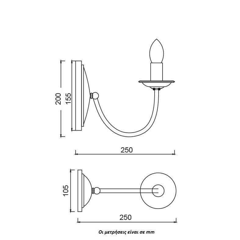 ACA Lighting Κλασσική Απλίκα Επίτοιχη Μεταλλική Μονόφωτη