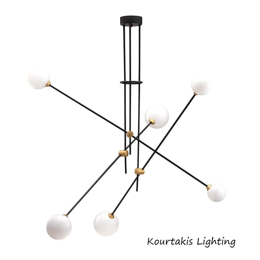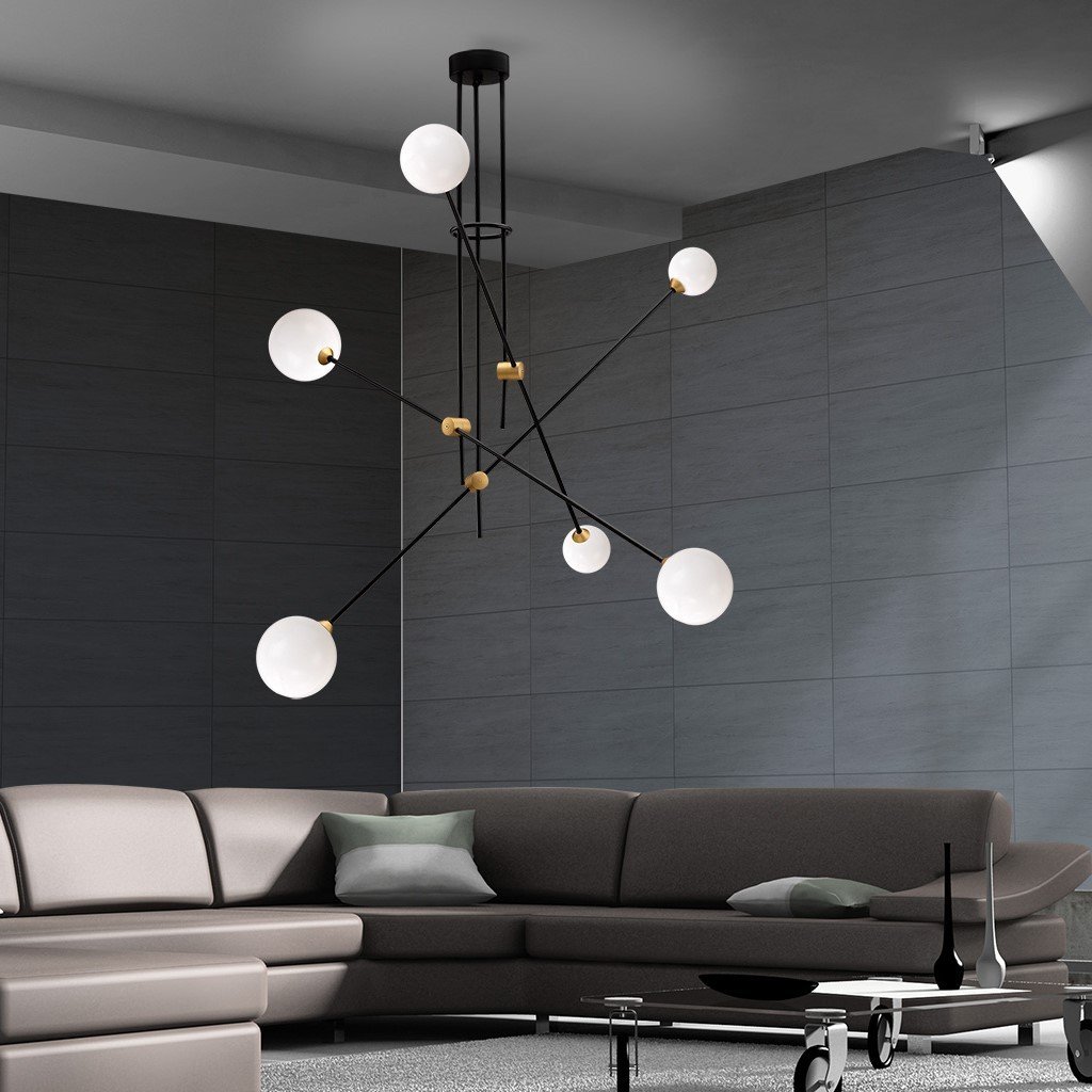 Φωτιστικό κρεμαστό εξάφωτο_μεταλλικό μοντέρνο με γυάλινες μπάλες_Luma
